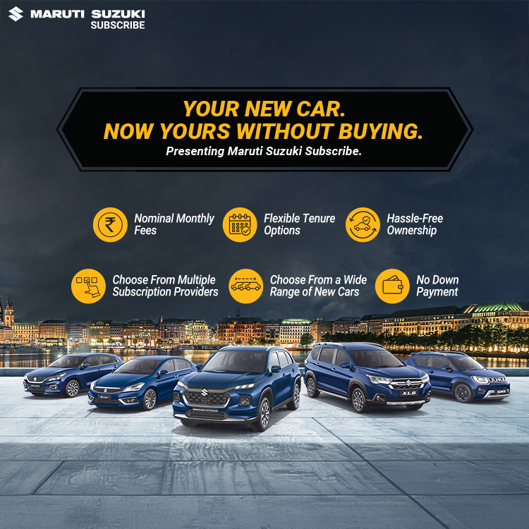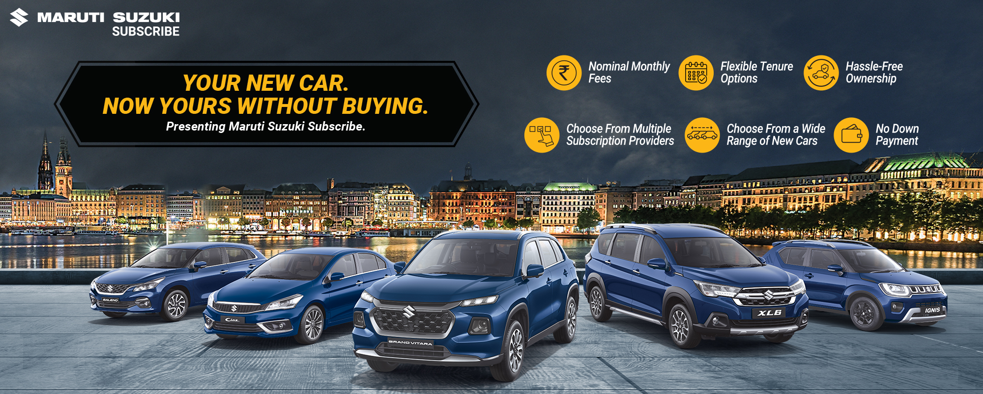 Located in Alappuzha, Sai Service offers a plethora of options of Nexa cars for Maruti Suzuki Subscribe. You can choose your desired Maruti Suzuki car and drive it home at nominal monthly fees for a variety of flexible tenure periods. Whether you prefer Hatchback, Sedan, SUV or even MUV you are sure to find it at Sai Service, with an easy Maruti Suzuki Subscribe plan.